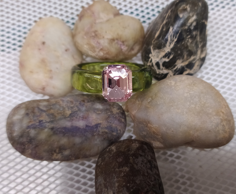 Anillo 3D metálico y resina acrílica